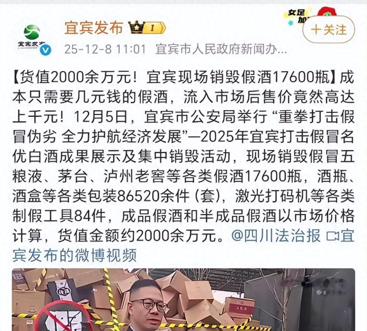 有数据表明,仅在过去几年里,多地查获和销毁了大量假冒白酒,涉案金额不菲。